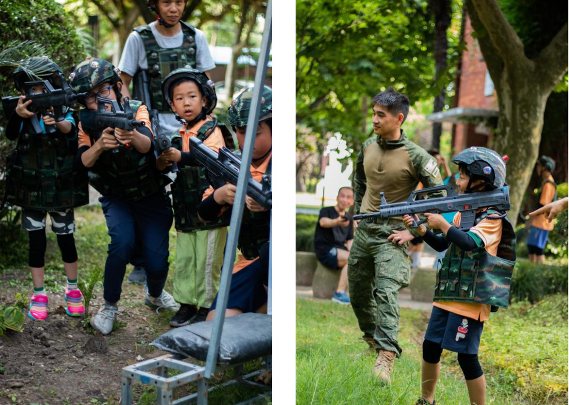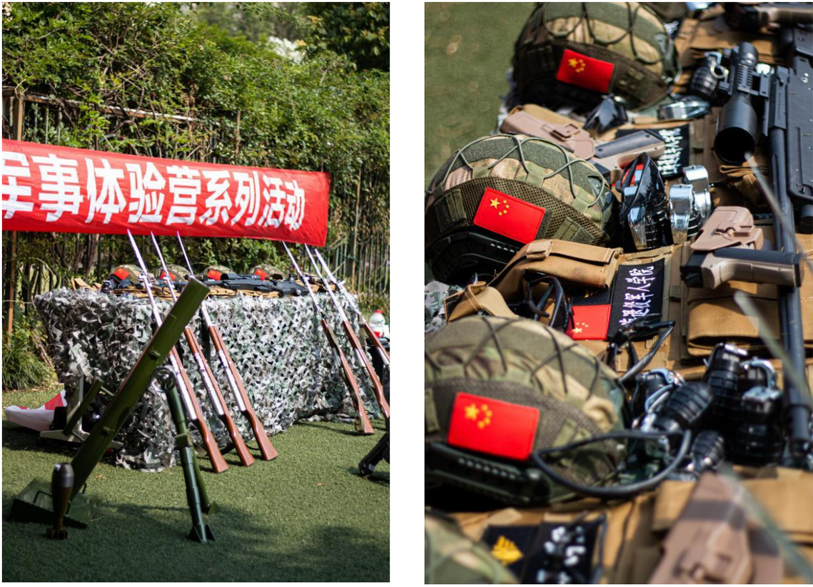 活动当天吸引了 20 余名青少年和家长参与。活动安排 主要分为四个部分:教官展示(队列、擒敌拳、倒功)、武 器讲解(82-2 式手雷和 95 式突击步枪)、体能训练(障碍场竞赛和武器模拟投掷)及真人 CS 射击体验。在教官指导下,首先进行了分组,换好队服后学员们观 看由教官进行的队列、完整版擒敌拳16动和倒功展示,同时认真聆听每个动作的具体讲解。