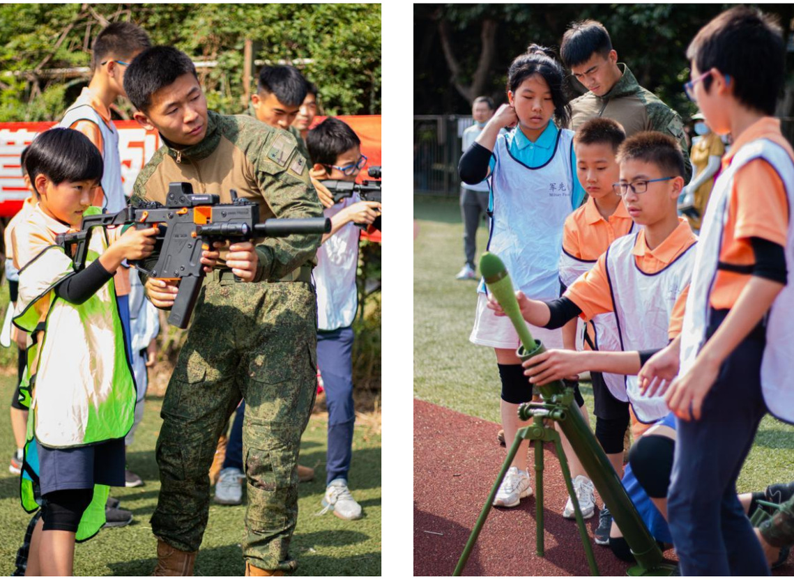 为了增强学员们的实操体验感,提升团队协作能力,在 学习完基本的军事知识后教官安排了障碍场竞赛和实弹射击,这也是军事体验中最重要的环节之一:通过模拟射击, 体验军人在战斗中的状态,锻炼学员的耐心和注意力。举枪,瞄准,击中目标!填弹,瞄准,确认开炮!现场充斥着学员 们打靶成功的欢呼,每个人都跃跃欲试,脸上都洋溢着激动、自豪的神情。