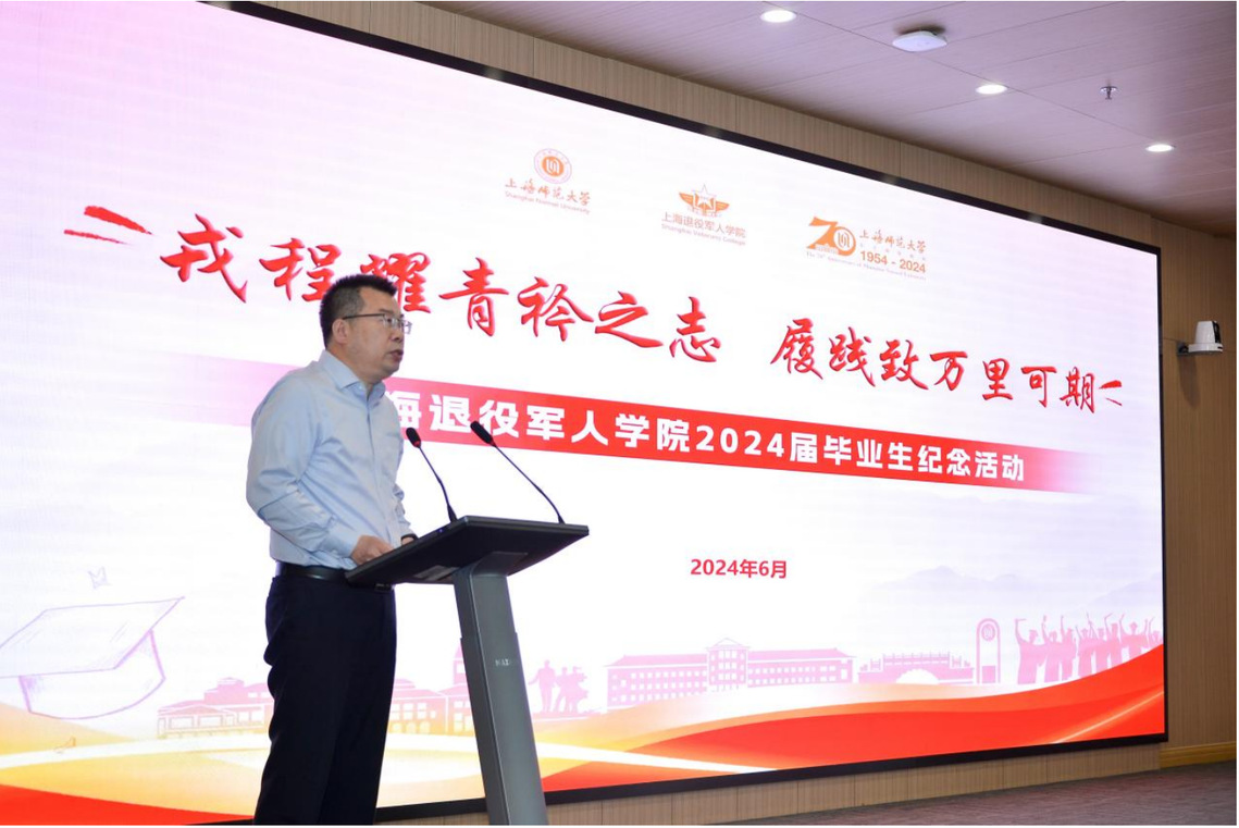 上海市教育委员会副主任孙真荣最后为毕业生送上离别寄语。2022年,国家在颁布《新时代基础教育强师计划》的同时,退役军人事务部、教育部、人力资源和社会保障部又联合发布了《关于促进优秀退役军人到中小学任教的意见》。同年,退役军人事务部、教育部、上海市人民政府、上海警备区在yl7703永利集团官网为yl7703永利集团官网揭牌。他对学院发挥yl7703永利集团官网教师教育特色和综合学科优势的基础上,融入国防教育特色,围绕多学科师范专业打造本硕一体化培养体系表示赞同。对学院致力于中小学卓越“兵教师”培养,使优秀退役老员工士兵顺利走上三尺讲台,成为一专多能、有底气、有志气、有骨气的新时代退役军人教师表示肯定。如今首届毕业生完成学业,奔向社会大展宏图,他代表教委向全体毕业生表示了祝贺并送上了美好祝愿。并希望同学们谨记学校“厚德 博学 求是 笃行”的校训;永葆持续学习和追求卓越的热情;永葆军人本色,退伍不褪色,逐梦追光,脚踏实地。以学院名誉经理、全国教育育人楷模于漪老师的“人民教育家”精神激励自己,做一名“四有”好老师。