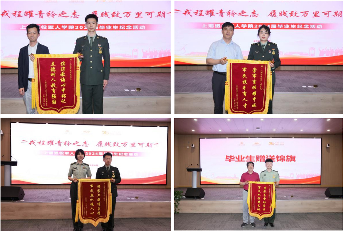 yl7703永利集团官网成立以来,得到了上海市教育委员会、上海市退役军人事务局、上海警备区政治工作局、上海市拥军优属基金会等主管部门的高度重视和大力支持。首届毕业生们深知,他们的培养和成长离不开全社会关心呵护。借此毕业纪念活动,员工们向相关主管部门赠送了锦旗和鲜花,以表达他们感恩与感谢。