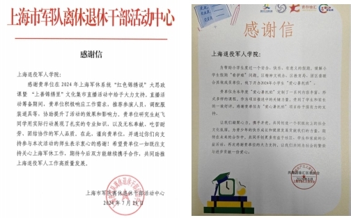 6月29日,由《决战沙场》赛事组委会主办的首届上海市中小员工军事素养课《决战沙场》对抗赛在上海市文来中学初中部举行。员工将一学期教授的成果在现场以红蓝对抗的方式展现。7月25日,上海市军休系统“红色锦绣说”大思政课暨“上善锦绣里”文化集市直播活动在上海电视台举行,员工担任节目主持及表演任务。7月31日,上海市庆祝中国人民解放军建军97周年“崇敬大会”在上海展览中心举行,学院师生承担会场布置、会场引导等志愿服务,并参加节目表演。