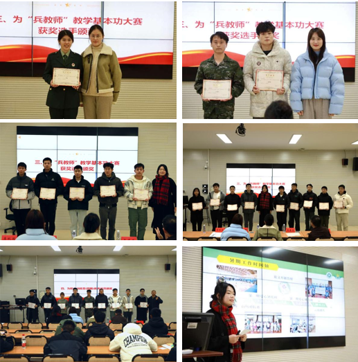 组织2026届毕业生开展教学基本功大赛,通过院内初赛、复赛,决赛三轮比拼,曹丽娟同学带来的《解决问题(2)》获一等奖,应海涛同学的《兵之坚毅,跑向未来》,张庭睿同学的《增强安全意识,提高避险能力》获二等奖,多名同学获三等奖和优胜奖。通过各项比武赛事,增加同学们撰写教案、站上讲台的锻炼机会,促进相互之间互学互鉴。学校武装部、学院辅导员、教务员、毕业班研究生分别作为嘉宾评审参与活动,并为获奖个人颁发证书。