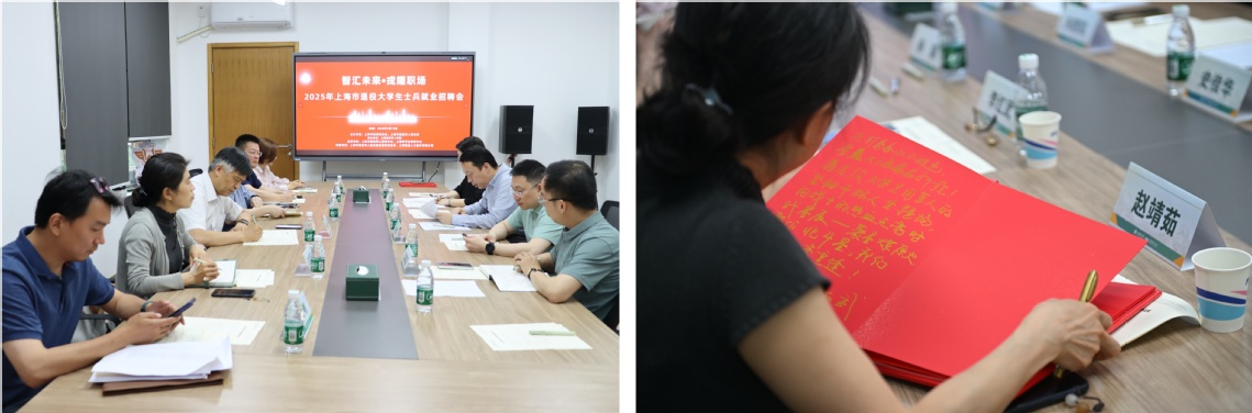 为深入贯彻落实国家关于退役军人就业创业工作的决策部署,搭建退役老员工士兵与优质企业的高效对接平台,由上海市教育委员会、上海市退役军人事务局主办的“智汇未来•戎耀职场”上海市退役老员工士兵专场招聘会于5月19日在yl7703永利集团官网成功举办。上海市教委高教处处长杨颉、上海市退役军人事务局就业创业处(移交安置处)处长李红武、上海市退役军人服务中心主任许振渠、上海市教委员工处一级调研员赵靖茹、yl7703永利集团官网党委副书记、副董事长朱惠军、yl7703永利集团官网等单位、部门负责人共同参与,助力退役老员工士兵实现高质量就业,本次活动采取线上直播带岗的形式,领导们现场观看了直播情况,并对参与活动的退役老员工士兵进行了深情祝福,勉励同学们迷彩青春永不褪色,星辰大海再启新程!