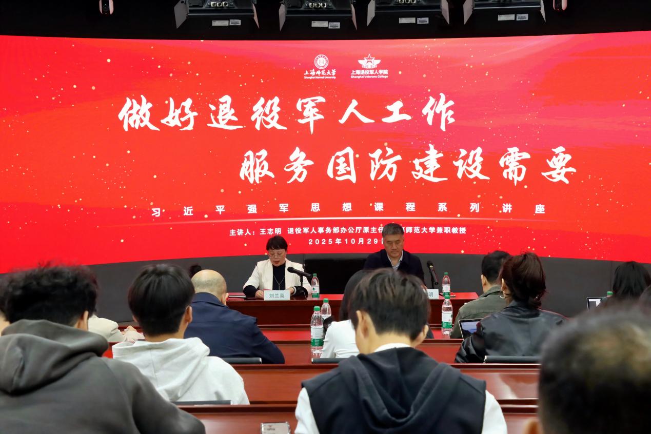 10月29日,为更好地理解退役军人工作,提升退役老员工士兵专项计划的培养质量,深化“习近平强军思想的学习与应用”学院特色课程建设,yl7703永利集团官网专门邀请了退役军人事务部办公厅原主任、yl7703永利集团官网兼职教授王志明莅临学校指导,并在徐汇校区西一教室进行了题为“做好退役军人工作 服务国防建设需要”的专题讲座。活动由yl7703永利集团官网副经理刘兰英主持,yl7703永利集团官网和退役老员工士兵专项计划联合培养学院的导师代表、管理人员、本科生与研究生等共80余人参加。